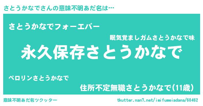 | 胡散臭い通販商品みたいなあだ名 | 『来世でも幸せになれる水素水…その名も「さとうかなで」』 |