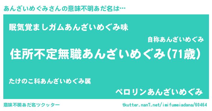 | 男性向けラノベタイトル風あだ名 | 『この素晴らしい世界にあんざいめぐみを!』 |