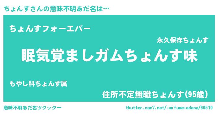 | ヒーロー風カッコイイあだ名 | 『愛の使者ちょんす』『仮面チョダー』 |