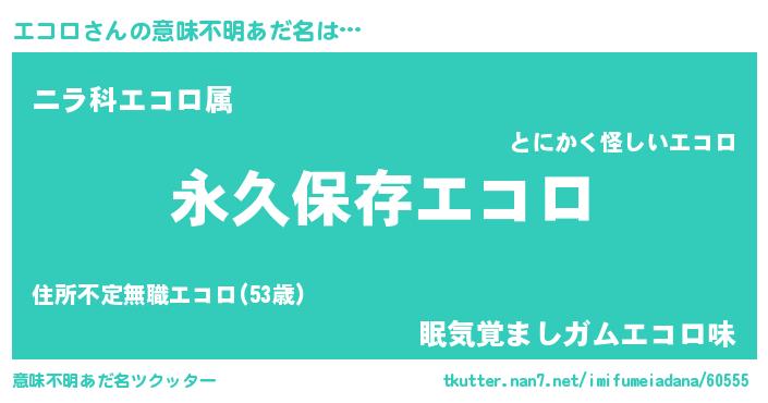 | ヘコむあだ名 | 『エコロ(震え声)』『エコ太郎』 |