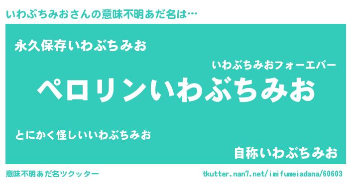 | 男性向けラノベタイトル風あだ名 | 『イワブチミオアートオンライン』 |