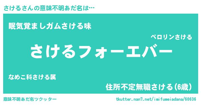 | 男性向けラノベタイトル風あだ名 | 『はたらくさけるさま!』『さけるの憂鬱』 |