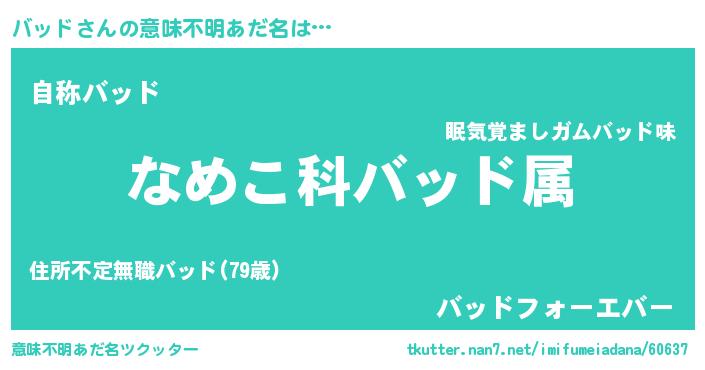| 女子向けラノベタイトル風あだ名 | 『バッドの玉の輿計画!』『闇のバッド』 |
