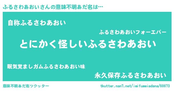 | ヘコむあだ名 | 『ふるっ子』『ふるさわあおい(爆)』 |