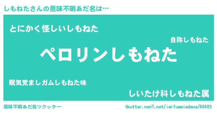 | 男性向けラノベタイトル風あだ名 | 『しもねたの憂鬱』『シモネタスレイヤー』 |