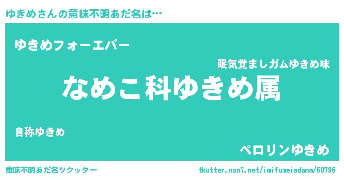 | 男性向けラノベタイトル風あだ名 | 『転生したらゆきめだった件』 |