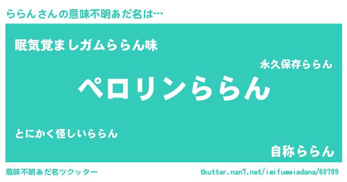 | 男性向けラノベタイトル風あだ名 | 『ラランアートオンライン』 |