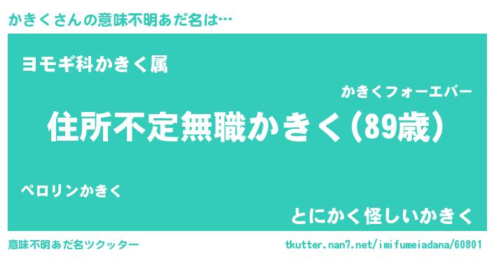 | 男性向けラノベタイトル風あだ名 | 『この素晴らしい世界にかきくを!』 |