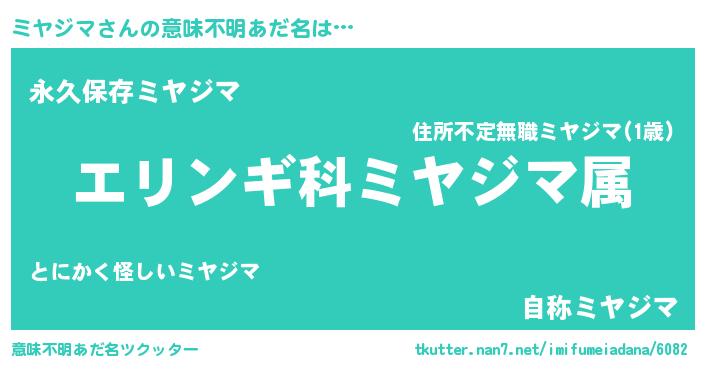 | 胡散臭い通販商品みたいなあだ名 | 『絶対に幸福をもたらす水素水…その名も「ミヤジマ」』 |