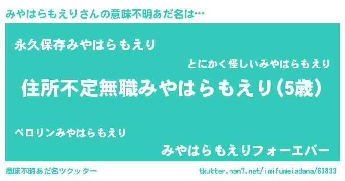 | ヒーロー風カッコイイあだ名 | 『仮面ミヤダー』『ネオミヤハラモエリ』 |