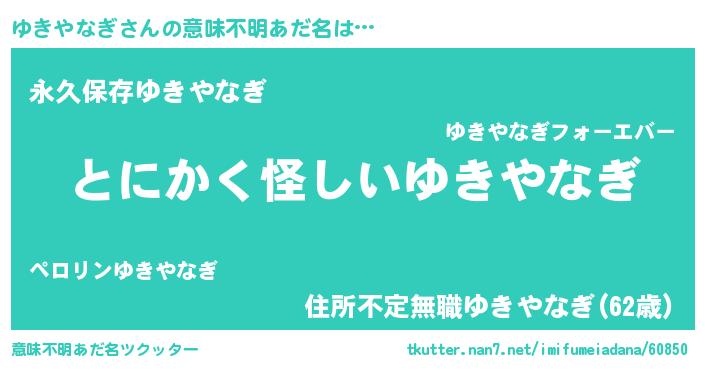 | 男性向けラノベタイトル風あだ名 | 『ゆきやなぎの嫁は女の子じゃないと思った?』 |