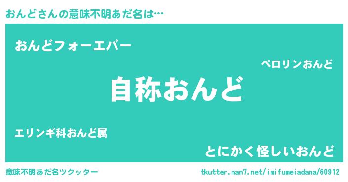 | 男性向けラノベタイトル風あだ名 | 『Re:おんどから始める異世界生活』 |