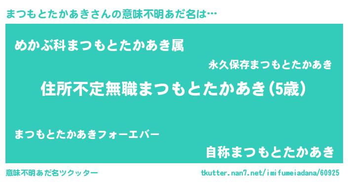 | 男性向けラノベタイトル風あだ名 | 『この素晴らしい世界にまつもとたかあきを!』 |