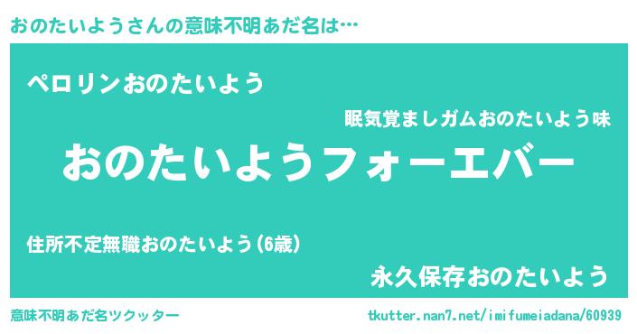 | ファンタジー風あだ名 | 『エターナルオノタイヨウー』 |