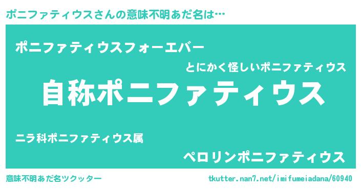 | ポケモン風あだ名 | 『ポニセウス』『ポニフダネ』 |