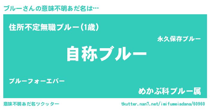 | 男性向けラノベタイトル風あだ名 | 『Re:ブルーから始める異世界生活』 |