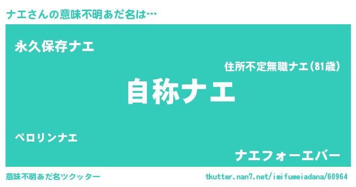 | 女子向けラノベタイトル風あだ名 | 『ナエなんてお断りですっ。』 |