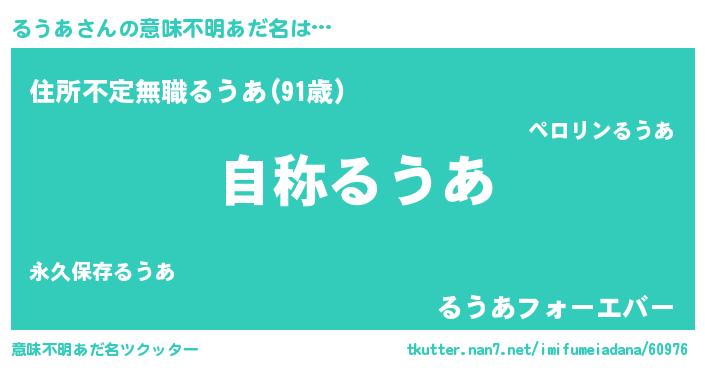 | 欧米人風あだ名 | 『ケンブリッジるうあ』『マイケルるうあ』 |