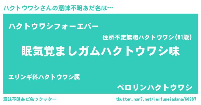 | ポケモン風あだ名 | 『ハックウザ』『ハクトダネ』 |