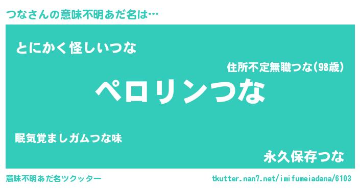| ポケモン風あだ名 | 『ツナチュウ』『ヒツナ』『ゼニツナ』 |