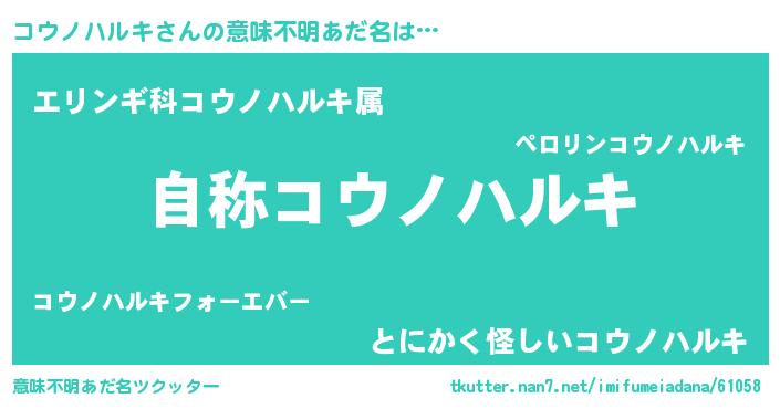 | 女子向けラノベタイトル風あだ名 | 『コウノハルキストレイドッグス』 |