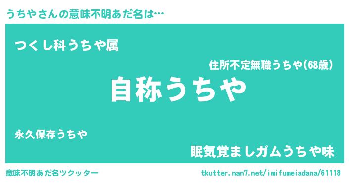 | ヒーロー風カッコイイあだ名 | 『究極戦士ウチヤ』『慈愛の使者うちや』 |