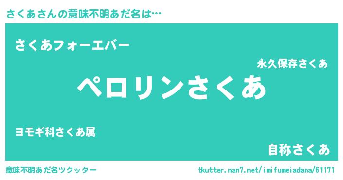 | ファンタジー風あだ名 | 『サクフェル』『エターナルサクアー』 |