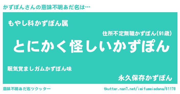 | 男性向けラノベタイトル風あだ名 | 『ダンジョンにかずぽんを求めるのは間違っているだろうか』 |