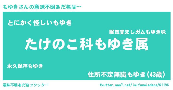 | 料理風あだ名 | 『もゆきごはん』『もゆきの豆乳スープ』 |