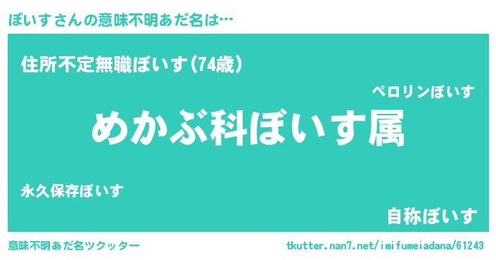| ヘコむあだ名 | 『ぼいにゅー』『ぼいす(苦笑)』 |