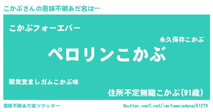| 男性向けラノベタイトル風あだ名 | 『こかぶの憂鬱』『魔弾の王とこかぶ』 |