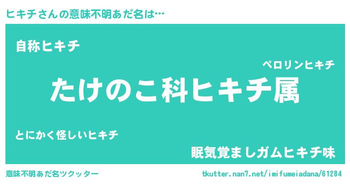 | 可愛いあだ名 | 『ヒキぷりん』『ヒキうちぇる』 |