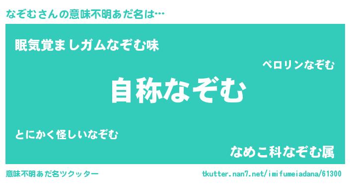 | ヒーロー風カッコイイあだ名 | 『超時空戦士ナゾム』『正義の使者なぞむ』 |