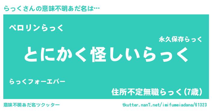 | 胡散臭い通販商品みたいなあだ名 | 『伝統あるサプリメント…その名も「らっく」』 |