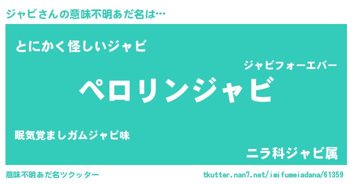 | 男性向けラノベタイトル風あだ名 | 『緋弾のジャビ』『はたらくジャビさま!』 |