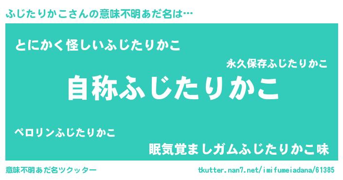 | 胡散臭い通販商品みたいなあだ名 | 『ガンによく効くアガリクス…その名も「ふじたりかこ」』 |
