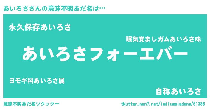 | ヒーロー風カッコイイあだ名 | 『ウルトラあいろさマン』『ネオアイロサ』 |