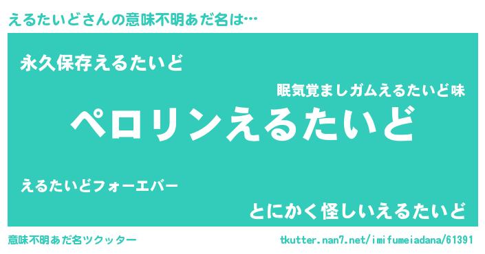 | 男性向けラノベタイトル風あだ名 | 『えるたいどの憂鬱』 |
