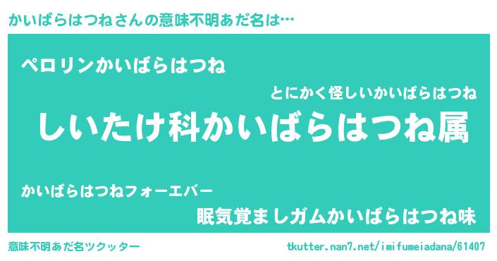 | ヒーロー風カッコイイあだ名 | 『スーパーカイバラハツネ』 |