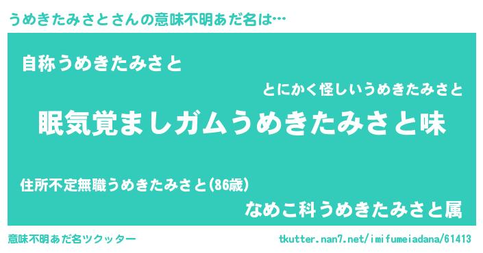 | 欧米人風あだ名 | 『ダニエルうめきたみさと』 |