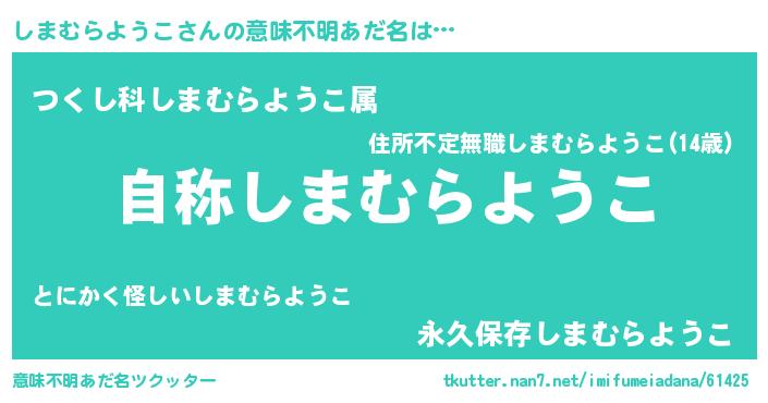| 男性向けラノベタイトル風あだ名 | 『Re:しまむらようこから始める異世界生活』 |
