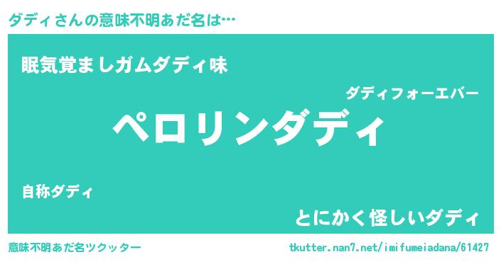 | 胡散臭い通販商品みたいなあだ名 | 『必ず成功する霊験あらたかなお札…その名も「ダディ」』 |