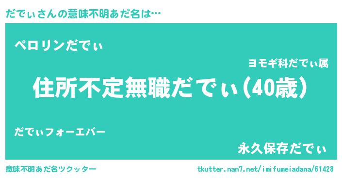 | 男性向けラノベタイトル風あだ名 | 『魔弾の王とだでぃ』『だでぃの憂鬱』 |