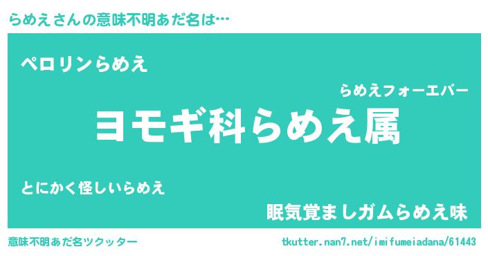 | 欧米人風あだ名 | 『トリンドルらめえ』『マイケルらめえ』 |