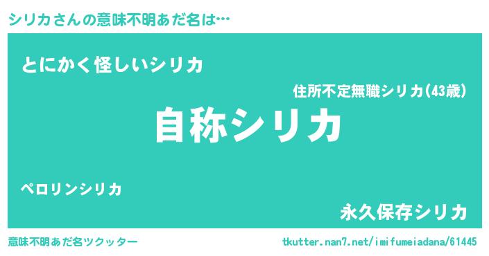 | 女子向けラノベタイトル風あだ名 | 『シリカなんてお断りですっ。』 |