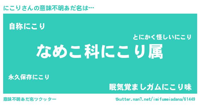 | ヘコむあだ名 | 『にこっ子』『にこり(笑)』 |
