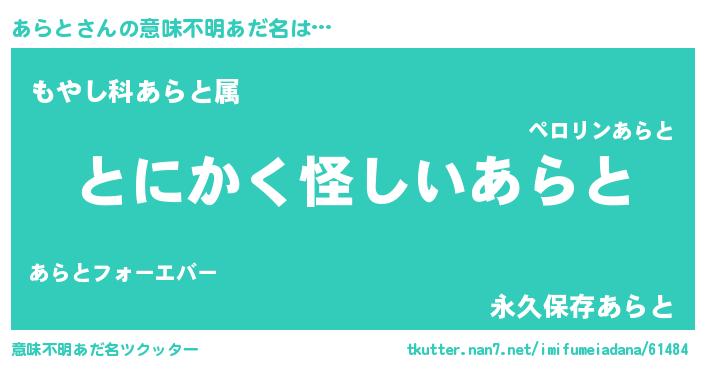 | 胡散臭い通販商品みたいなあだ名 | 『信頼と実績のネックレス…その名も「あらと」』 |
