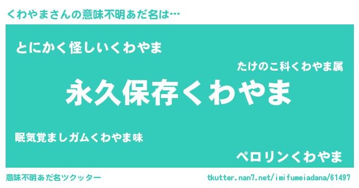 | 胡散臭い通販商品みたいなあだ名 | 『絶対に幸福をもたらす健康食品…その名も「くわやま」』 |