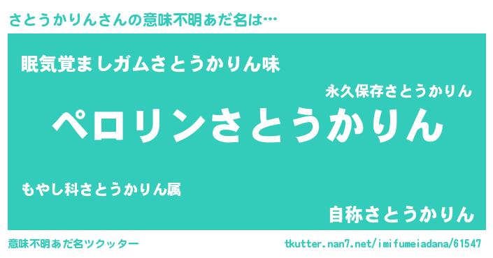 | 欧米人風あだ名 | 『アンジェラ・さとうかりん』 |