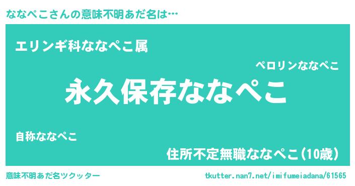 | 女子向けラノベタイトル風あだ名 | 『異世界で失敗しない100のななぺこ』 |